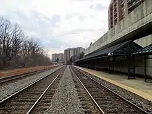 Crystal City station is a commuter rail station in the Crystal City section of Arlington, Virginia, located near the George Washington Memorial Parkway and Ronald Reagan National Airport. It is served by the Fredericksburg Line and Manassas Line of the Virginia Railway Express system. VRE plans to rebuild the station nearby to accommodate longer trains and increased service.