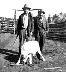 ![]() Federal hunter H.P. Williams (pictured left) and local rancher stand over slain Custer Wolf on October 11, 1920 | |