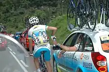 The 1990s saw the introduction of radio communication, allowing managers to assign tasks to domestiques wherever they are on the road. The influence of radios on race tactics is a topic of discussion amongst the cycling community, with some arguing that the introduction of radios in the 1990s has devalued the tactical knowledge of individual riders and has led to less exciting racing.[14] In September 2009, the Union Cycliste Internationale (UCI), the governing body of pro cycling, voted to phase in a ban on the use of team radios in men's elite road racing.[15] Finally radio found its undisputed place in peloton for good and, as some races with imposed radio ban proved, the ban changed nothing in racing tactics.[16][17]
