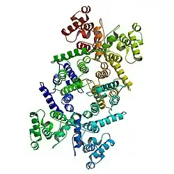 - Sadoulet-Puccio HM, Rajala M, Kunkel LM (November 1997). "Dystrobrevin and dystrophin: an interaction through coiled-coil motifs". Proceedings of the National Academy of Sciences of the United States of America. 94 (23): 12413–8. Bibcode:1997PNAS...9412413S. doi:10.1073/pnas.94.23.12413. PMC 24974. PMID 9356463.