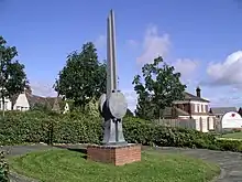 The statue indicating that a Daimler factory stood on the Daimler Green site from 1912 to 1997