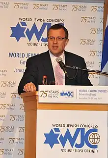 Diker was secretary general of the World Jewish Congress (WJC), an umbrella group representing Jewish communities and organizations in nearly 100 countries. Diker began his term as Secretary General designate in December 2010, and was formally elected WJC secretary general on 20 June 2011 by the WJC Governing Board in Jerusalem, Israel.[4] In December 2012, the London-based Jewish Chronicle newspaper reported that Diker had announced his resignation effective January 2013, with the WJC's relocation of its main office to NYC. According to the article, WJC President Ronald S. Lauder praised Diker's "enthusiasm and dynamism" and said that his "love of Israel and the Jewish people is second to none..."[5]