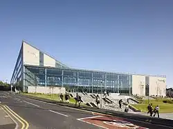 The academy moved to a new purpose-built site in September 2010, located in the Redearth area at the centre of Darwen.[4] The new site features a five-storey main building, a sports hall, a dance/drama studio, a café and office spaces for young entrepreneurs.[5][6] It was designed by architecture firm Aedas.[7]