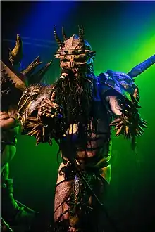 Like all of Gwar's characters, Oderus underwent several design changes since his inception. He first started out as a relatively normal-looking character with a papier-mâché helmet with spikes that appeared to be made out of aluminum foil. This eventually progressed into a rubber wig. In the late 1980s Brockie, along with Chuck Varga, created the now-famous original design mask.