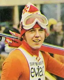 David Zwilling (born 24 August 1949) is an Austrian former alpine skier and world champion.[1] He won a gold medal in the downhill at the FIS Alpine World Ski Championships 1974 and finished second in the overall 1973 Alpine Skiing World Cup. He competed in the slalom and giant slalom at the 1972 Olympics and finished seventh in both events.[2]