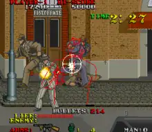 The port was faulted for jerky scrolling in the January 1990 issue of Computer and Video Games. Reviewer Paul Rand said that the slow movement hampered the otherwise fun gameplay and gave the game a 68%.[8] Despite this, Computer and Video Games subsequently published more positive reviews in their Complete Guide to Sega and Complete Guide to Consoles, rating it 83% and calling it an "Operation Wolf-style coin-op" conversion. They lauded the graphics and gameplay, calling it "Easily one of the best shooting games on the Sega."[9][10]
