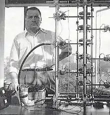 Dean made a demonstration for a representative of the magazine Popular Mechanics of one of his "Dean drive" devices. The witness reported that "While suspended above the ground, was able to pull a load to itself without itself being pulled toward the load".[2] Another version of the machine was reported to be "able to apply a force to a hand, without moving—yet when the machine was turned off an equivalent force applied by the hand easily moved the machine".[3] William O. Davis, who witnessed the latter demonstration, wrote in his notebook about Dean's explanation of how the device worked, "... does not strike me as valid ... For this reason I have decided to undertake a theoretical study of dynamic systems to see if a concept can be evolved which will describe a world in which Dean's Drive can exist and yet where other known facts are not contradicted."[3] Davis produced a hypothesis and it was published in Analog in 1962.[14]