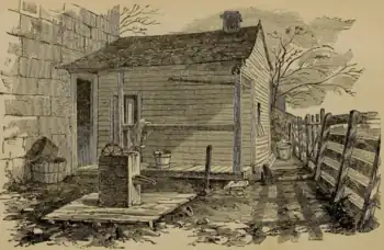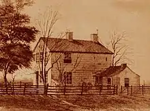 Before a trial could be held, a mob of about 200 armed men, their faces painted black with wet gunpowder, stormed Carthage Jail in the late afternoon of June 27, 1844. As the mob was approaching, the jailer became nervous and informed Smith of the impending attack. In a letter dated July 10, 1844, one of the jailers wrote that Smith, expecting the Nauvoo Legion, said, "Don't trouble yourself ... they've come to rescue me."[23] Smith did not know that Jonathan Dunham, major general of the Nauvoo Legion, had not dispatched the unit to Carthage to protect him. Allen Joseph Stout later contended that by remaining inactive, Dunham disobeyed an official order written by Smith after he was jailed in Carthage.[24]