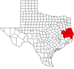 ![]() Map of Texas highlighting counties served by the Deep East Texas Council of Governments | |