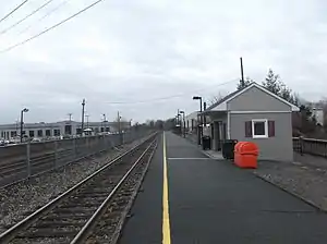 ![]() Delawanna station in March 2014, from the Suffern-bound platform. | |||||||||||||