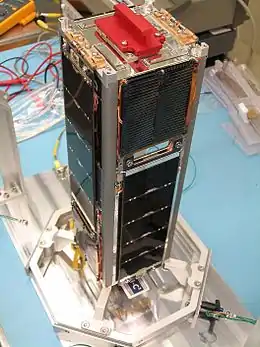 Delfi-C3 is a CubeSat satellite constructed by students at the Delft University of Technology in the Netherlands. It is a 3-unit CubeSat,[1] and was launched at 03:53:42 on 28 April 2008,[2] as part of the NLS-4 mission,[3] aboard a PSLV rocket, from the Second Launch Pad at the Satish Dhawan Space Centre in India. The launch was contracted by ISRO, through Antrix Corporation and UTIAS.[3]