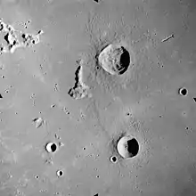 Delisle is a small lunar impact crater in the western part of the Mare Imbrium. It was named after French astronomer Joseph-Nicolas Delisle.[1] It lies to the north of the crater Diophantus, and just to the northwest of the ridge designated Mons Delisle. Between Delisle and Diophantus is a sinuous rille named Rima Diophantus, with a diameter of 150 km. To the northeast is another rille designated Rima Delisle, named after this crater.