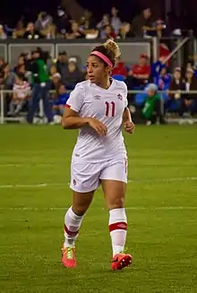 Desiree Rose Marie Scott (born 31 July 1987) is a Canadian professional soccer player who plays as a midfielder for American NWSL club Kansas City Current and the Canada women's national team. Nicknamed "the destroyer",[2] she won gold at the 2020 Olympics in Tokyo, which was her third Olympic medal following bronze medals in 2012 in London and in 2016 in Rio.