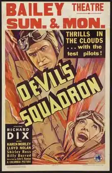 Devil's Squadron is a 1936 American drama film directed by Erle C. Kenton and starring Richard Dix, Karen Morley and Lloyd Nolan.[1] The following written prologue appears after the opening credits: "This picture is dedicated to the test pilots....those men who knowingly face death every time they leave the ground in an untried airplane. We never hear of these men, yet on their courage depends the future of aviation." [2]