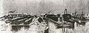 By the late 19th century, the shipyard grew to 34 acres (140,000 m2) with 2,000 feet (610 m) of waterfront, employing up to 800 workers. The shipyard produced numerous tugboats for the civilian market and for the U.S. Navy. In 1871, the shipyard was building iron vessels ordered by the Revenue Marine department, such as the United States Steamship Colfax. In 1876, the company helped restore the USS Constitution. In 1878, the yard began to build compound engine tugboats. And, during the Spanish–American War, the shipyard completed and launched the United States Navy gunboat Princeton, which was sent to the Caribbean and was decommissioned in 1919.