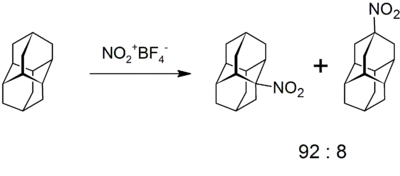 Diamantane can be nitrated by treatment with nitronium tetrafluoroborate (in nitrile-free nitromethane) to give a mixture of two isomeric nitrodiamantanes.[9]