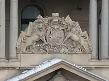 It is also found on the Old Customs House in Sydney, Australia. The Royal Coat of Arms is intricately carved in sandstone, located above the main entry pediment.