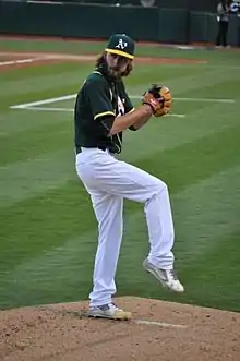 Overton was then drafted by the Oakland Athletics in the second round of the 2013 Major League Baseball draft.[3][4] After signing, Overton underwent Tommy John surgery, a development which significantly lowered his signing bonus.[5] He returned in 2014 and made his professional debut with the Arizona League Athletics. He was later promoted to the Vermont Lake Monsters, where he finished the season.[6] Unfortunately, the surgery did affect his fastball velocity, which dropped from mid-90s to high-80s.[7] Overton split the 2015 season with the Class A-Advanced Stockton Ports and the Double-A Midland RockHounds. He began the 2016 season with an 8–4 record and 3.01 earned run average with the Triple-A Nashville Sounds,[8] before being promoted to the Athletics to make his major league debut on June 25, becoming the 11th Athletic to make a start during 2016.[9] Overton made 5 starts with Oakland in 2016, going 1–3 with an 11.47 ERA, giving up 12 HR in 24.1 innings pitched. Following the signing of infielder Adam Rosales, Overton was designated for assignment on January 25, 2017.[10]