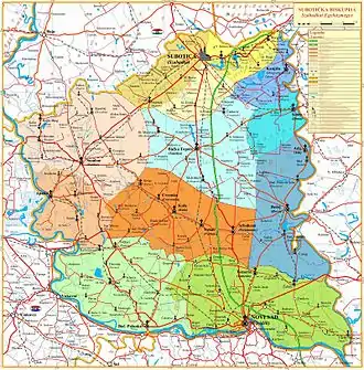 ![]() Map of organization of Catholic Church in Serbia Subotica Bishopric - Yellow | |