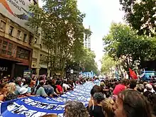 Under the Carlos Menem government, Congress passed legislation to provide compensation to victims' families. Some 11,000 Argentine next of kin have applied to the relevant authorities and received up to US$200,000 each as monetary compensation for the loss of loved ones during the military dictatorship, while others such as the Mothers of the Plaza de Mayo refused to take any money from a government they considered to follow the same neoliberal policies dictated by Operation Condor.[104][105] After a 2017 ruling by the Supreme Court, the National Congress of Argentina excluded convicts of crimes against humanity from the reduced sentences granted to other convicts.[106]