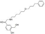 ![]() | Salmeterol | Has a N-phenylbutoxyhexyl substituent, β-hydroxyl group and a salicyl phenyl ring that gives potency and direct selectivity for β2-receptor.[14] The optimal position of the ether oxygen in the chain of Salmeterol for both potency and duration is six carbon atoms from the basic nitrogen.[18] |