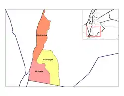 The district "Liwaa" (Arabic: لواء, plural Alwiya ألوية) are the administrative centres ("chief towns") in Jordan.[1] The twelve governorates of Jordan contain fifty-two alwiya which are listed below by governorate. In many cases the name of the chief town is the same as the name of the district (liwa) or sub-district (qda) administered.