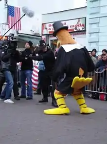 Roth's fake trailer contained elements that almost earned Grindhouse an NC-17 rating, including a cheerleader simultaneously stripping, bouncing on a trampoline, and getting stabbed in the vulva, and three decapitations; the first victim dressed as a Pilgrim turkey at a parade gets decapitated and his headless body stumbles around in an exaggerated manner, the second occurs as the victim's girlfriend performs fellatio on him, and the last decapitation occurs on a man while he is being kissed by a female victim. According to Roth, "Instead of seeing it spread out in a feature, watching it all jammed together nonstop makes it more shocking. But we had a great discussion with the ratings board. They got it. Once they saw it with all the bad splices and the distress and scratches they were fine with it."[11] Roth confirmed in an interview with Cinema Blend's Eric Eisenberg that he and co-writer Jeff Rendell are working on a possible feature film.[18] Roth announced in January 2023 that he had left reshoots of the upcoming Borderlands film to work on shooting Thanksgiving, though was still involved with the Borderlands project and had given his replacement Tim Miller his blessing to complete the reshoots.[19] In February 2023, it was announced that Addison Rae will play a lead role in the movie.[20]