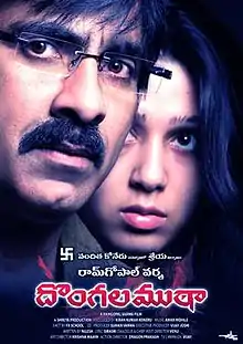 Dongala Mutha (transl. Gang of thieves) is a 2011 Indian Telugu-language action thriller film directed by Ram Gopal Varma. The film stars Ravi Teja, Charmy, Prakash Raj, Lakshmi Manchu, Sunil, Bramhanandam, Subbaraju and Supreeth Reddy.[1] This film is the first of its kind in Indian cinema as it was shot with just 7 crew members and in a record of 5 days. Prior to filming, Varma announced that this film has no budget and that the cast and crew will not be taking remunerations until the film hits theaters.