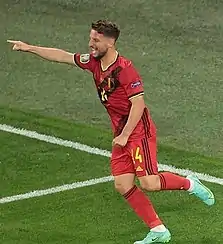 On 17 June 2021, Mertens played his 100th match for Belgium in a 2–1 win over Denmark during the UEFA Euro 2020.[74]