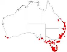 D. binata occurs naturally in Australia, primarily in coastal areas from Fraser Island in Queensland, southwards down through New South Wales and Victoria to Tasmania and the south-east corner of South Australia. The range of this species extends to New Zealand where it is common below an elevation of 1000 metres, being found in both the North and South Islands, Stewart Island/Rakiura and farther afield on the Chathams.[3] Some populations go dormant in the winter, while others are truly tropical.