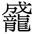 A character for duang does not exist in any Chinese dictionary and is not encoded in Unicode, but was created from the two characters used for Jackie Chan's Chinese stage name, Cheng Long (simplified Chinese: 成龙; traditional Chinese: 成龍; pinyin: Chéng Lóng, meaning "become a dragon"), stacked on top of each other.