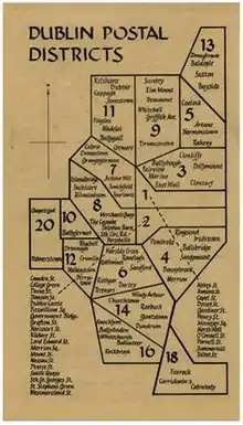 The postal district system was introduced in 1917 by the British government, as a practical way to organise local postal distribution.[4] This followed the example of other cities, including London, first subdivided into ten districts in 1857,[5] and Liverpool, the first city in Britain or Ireland to have postcodes, from 1864. The letter "D" was assigned to designate Dublin[6] and was retained by the new Irish government.[5]