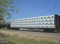 ![]() A Duluth, Winnipeg, and Pacific Railway centerbeam flat car in Norman, Oklahoma. | |