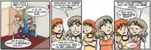 Dumbing of Age is a webcomic about college life at Indiana University by cartoonist David Willis with themes involving drama or comedy, occasionally with a mixture of both. The series itself is a reboot reusing characters from Willis' previous comics (Roomies!, It's Walky!, Joyce and Walky!, and Shortpacked!).[1][2] While Willis' previous webcomics shared a science-fiction universe, Dumbing of Age is independent of these, reflecting more slice-of-life than the previous works.[3] The comic is generally set in the present day, yet not set in any particular year due to the glacial pacing (Every in-universe day takes around 1-2 months of daily comics), current technologies are depicted in-comic anachronistically so the comic is not a period piece.[4] Willis has reported Dumbing of Age to be his most popular webcomic, with a readership that around three times that of Shortpacked!.[5]
