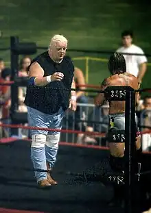Dusty Rhodes made his debut for the company on March 4, 1989, at an event in Titusville, Florida, when he teamed with Steve Keirn to defeat the duo of The Big Steel Man and Dick Slater.[30] A week later at the PWF Homecoming event in Tampa, Florida, he pinned Big Steel Man to become the first PWF Heavyweight Champion.[31] Later that spring as the PWF began to grow Rhodes received a surprise backstage visit from Bobby Heenan, who inquired on the state of the company's business. Shortly thereafter Vince McMahon reached out to Rhodes and made an offer to acquire the PWF as a developmental territory and to bring Rhodes into the WWF. He refused, as his desire was to grow the territory into a national brand that could compete with WCW and the WWF. However the Professional Wrestling Federation's backers did not have a desire to fund the company at a level necessary to enhance the territory further. In May he decided to part ways with the PWF and join the World Wrestling Federation as a wrestler.[32]