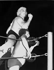 In 1968, Rhodes left Texas and entered the Kansas City territory, tagging with fellow Texan Dick Murdoch to form the tag team The Texas Outlaws.[11][12] The team traveled both nationally and internationally, appearing in Big Time Wrestling (Texas), NWA Western States Sports (Texas), NWA Detroit, National Wrestling Federation (NWF), Championship Wrestling from Florida, World Championship Wrestling (Australia), Tri-State Wrestling, the American Wrestling Association (AWA), and International Wrestling Enterprise (Japan).[4][11][13]