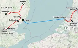 ![]() Map of the Dutch Flyer rail & sea route over the North Sea | |