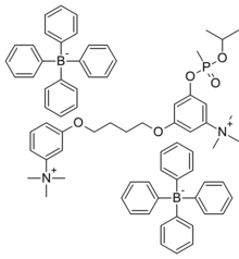 Bis(tetraphenylboranuide) N,N,N-trimethyl-3-({[(propan-2-yl)oxy](methylphosphonoyl)}oxy)-5-{4-[3-(trimethylazaniumyl)phenoxy]butoxy}anilinium | |