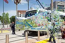 ![]() An LA Metro Kinki Sharyo P3010 train in service on the E Line | |
