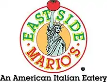 East Side Mario's is a Canadian chain of casual dining restaurants, managed by its parent holding company Recipe Unlimited. The restaurant specializes in Italian-American cuisine. Individual locations aim to recreate the historic ambience found at the corner of Canal Street and Mulberry Street in Lower Manhattan.[1] The brand is marketed as "A taste of little Italy". It is best recognized by its original logo featuring the Statue of Liberty holding a large tomato in place of a torch, as well as the jingle containing the catch phrase "Hey, budda boom budda bing".