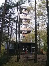 The Eckkopf Tower (German: Eckkopfturm) is a 25-metre-high observation tower on the eponymous Eckkopf (516 m), a major hill in the Palatine Forest of Germany. It has a tubular steel design and was erected in summer 1975 by the Deidesheim municipality. It has an observation height of 541 m above NN and offers a good all-round view – to the west, south and north over the Palatine Forest, and to the east over the Upper Rhine Plain.
