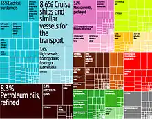 In July 2021 projection was improved to 5.4% due to the strong outturn in the first quarter and the positive high-frequency indicators concerning consumption, construction, industry and tourism prospects.[118] In November 2021 Croatia outperformed these projections and the real GDP growth was calculated to be 8.1% for the year 2021, improving its projection of 5.4% GDP growth made in July.[119] The recovery was supported by strong private consumption, the better-than-expected performance of tourism and the ongoing resilience of the export sector. Preliminary data point to tourism-related expenditure already exceeding 2019 levels, which has been supportive of both employment and consumption. Exports of goods have also continued to perform strongly (up 43%yoy in 2Q21) pointing to resilient competitiveness.[120] Expressed in euros, Croatian merchandise exports in the first nine months of 2021 amounted to 13.3 billion euros, an annual increase of 24.6 per cent. At the same time, imports rose 20.3 per cent to 20.4 billion euros. The coverage of imports by exports for the first nine months is 65.4 per cent.[121] This made 2021 Croatian export's record year as the score from 2019 was exceeded by 2 billion euros.[38]