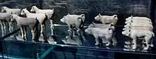 The main agricultural staple foods during the Han dynasty were foxtail millet, proso millet, rice (including glutinous rice), wheat, beans, and barley.[99] Other food items included sorghum, taro, mallow, mustard plant, jujube, pear, plum (including Prunus salicina and Prunus mume), peach, apricot, and myrica.[100] Chicken, duck, goose, beef, pork, rabbit, sika deer, turtle dove, owl, Chinese bamboo partridge, magpie, common pheasant, crane, and various types of fish were commonly consumed meats.[101]
