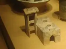 Common bronze items included domestic wares like oil lamps, incense burners, tables, irons, stoves, and dripping jars. Iron goods were often used for construction and farmwork, such as plowshares, pickaxes, spades, shovels, hoes, sickles, axes, adze, hammers, chisels, knives, saws, scratch awls, and nails.[104] Iron was also used to make swords, halberds, arrowheads and scale armor for the military.[105]