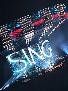 × was nominated for Album of the Year at the 57th Grammy Awards.[96] Sheeran performed "Thinking Out Loud" alongside John Mayer, Questlove and Herbie Hancock at the ceremony.[97] On 25 February, Sheeran won British Male Solo Artist and British Album of the Year for × at the 2015 Brit Awards.[98] On 21 May he received the Ivor Novello Award for Songwriter of the Year.[99] On 21 June, Sheeran co-hosted the 2015 Much Music Video Awards in Toronto, where he performed the singles, "Thinking Out Loud" and "Photograph"; he also won two awards, Best International Artist and Most Buzzworthy International Artist or Group.[100][101] On 27 June, Sheeran performed as the opening act for The Rolling Stones in their Zip Code Tour date in Kansas City's Arrowhead Stadium.[102] On 10–12 July 2015, Sheeran performed sold-out shows at London's Wembley Stadium. The shows, which were announced in November 2014, were part of his world tour.[103] The concert was documented and aired on 16 August 2015 on NBC; the one-hour special Ed Sheeran – Live at Wembley Stadium also included behind-the-scenes footage.[104] In November 2015 Sheeran released the DVD Jumpers for Goalposts: Live at Wembley Stadium; the title is a nod to playing concerts at Wembley Stadium, the home of English football.[105]