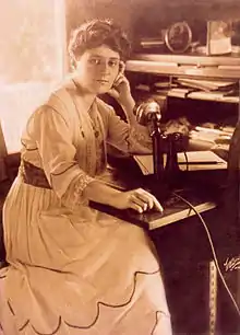 ![]() Edna Buckman Kearns in her home office in Rockville Centre, New York, circa 1915. | |