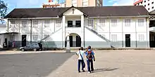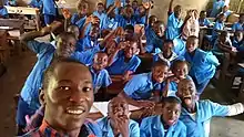 Two separate systems of education were used in Cameroon after independence: East Cameroon's system was based on the French model, West Cameroon's on the British model. Uniting the two systems was deemed a symbol of national integration between West and East Cameroon.[4] The two systems were merged by 1976, but studies suggest that they did not blend well.[5] Shortly after independence, French was considered the main language of the country, but with the rising of English as first commercial language in the world, the balance switched to the latter.[6] Christian mission schools have been an important part of the education system, but most children cannot afford them and are forced to choose state-run schools.[7] Education became compulsory up to the age of 12 years, when 6 years of primary schooling are complete. Education was free but uniforms and books etc. were provided by parents and, tertiary level students received money monthly back in the days of President Amadou Ahidjo and,for the first few years of President Paul Biya.Primary school education is free (since 2000), but families must pay for uniforms, book fees, and sometimes even anti-malaria prophylaxis for pupils. Tuition fees at the secondary school level are high, and therefore unaffordable for many families.[8] The country has institutions for teacher training and technical education. There is, however, a growing trend for the wealthiest and best-educated students to leave the country to study and live abroad.