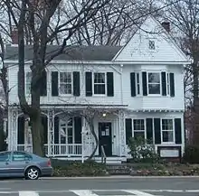 Hopper's portraits and self-portraits were relatively few after his student years.[102] Hopper did produce a commissioned "portrait" of a house, The MacArthurs' Home (1939), where he faithfully details the Victorian architecture of the home of actress Helen Hayes. She reported later, "I guess I never met a more misanthropic, grumpy individual in my life." Hopper grumbled throughout the project and never again accepted a commission.[103] Hopper also painted Portrait of Orleans (1950), a "portrait" of the Cape Cod town from its main street.[104]
