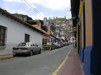 El Hatillo is an accessible day visit destination for people from Caracas; the municipality is only 15 km (9.3 mi) southeast of downtown Caracas but in the mountains removed from the congested Caracas valley;[32] thus, development has focused on day tourism. The central town square – Plaza Bolívar – and its surroundings are well maintained, and the municipal government offers bus trips around the narrow streets for viewing the colonial architecture of the town.[3] Handcrafted souvenirs and products are popular purchases, offered at local artisan shops, and there are numerous restaurants.[33] There are at least three cultural centers in the municipality that attract tourists and residents to music festivals and art expositions.