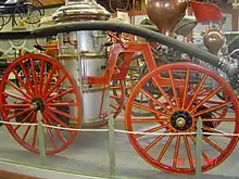 Joseph Sachs had also invented an electric fire engine vehicle consisting of a wagon on which a spring-supported platform held an electric motor which operated two rotary water pumps.[4][6] The motor was supplied with a reel of electric cable and it could be regulated from either side of the vehicle.[7][8]